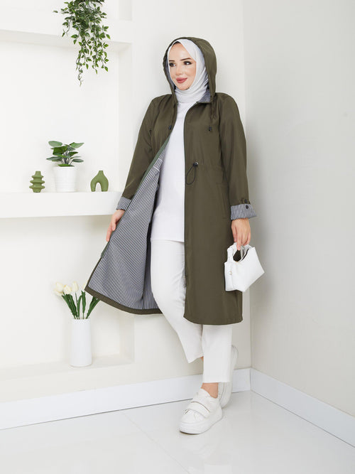 ÇİZGİLİ MEVSİMLİK TRENÇKOT-remabutik